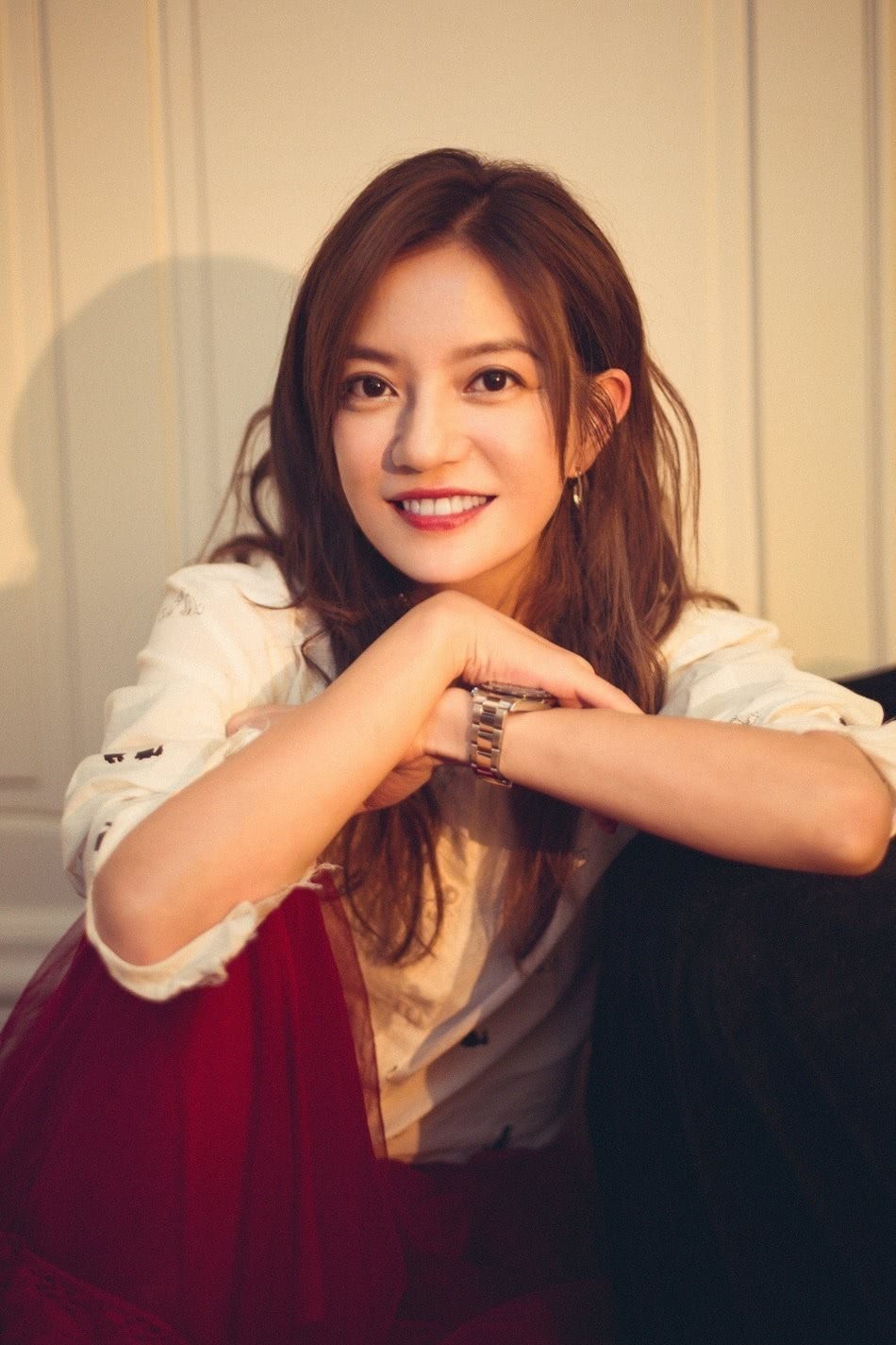 照片里赵薇戴着一副黑框眼镜,面对镜头脸上洋溢着幸福的笑容,看面容怎么也不像是将近50岁的模样。