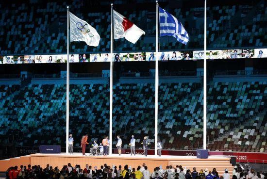 8月8日,第32届夏季奥林匹克运动会闭幕式在日本东京举行。这是志愿者代表接受国际奥委会运动员委员会新委员致意。(新华社记者 王丽莉 摄)