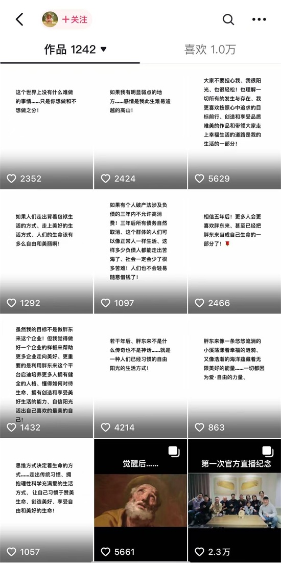11月23日中午,胖东来创始人于东来在社交平台连发11条图文生成的短视频,表达自己的心情和感悟。