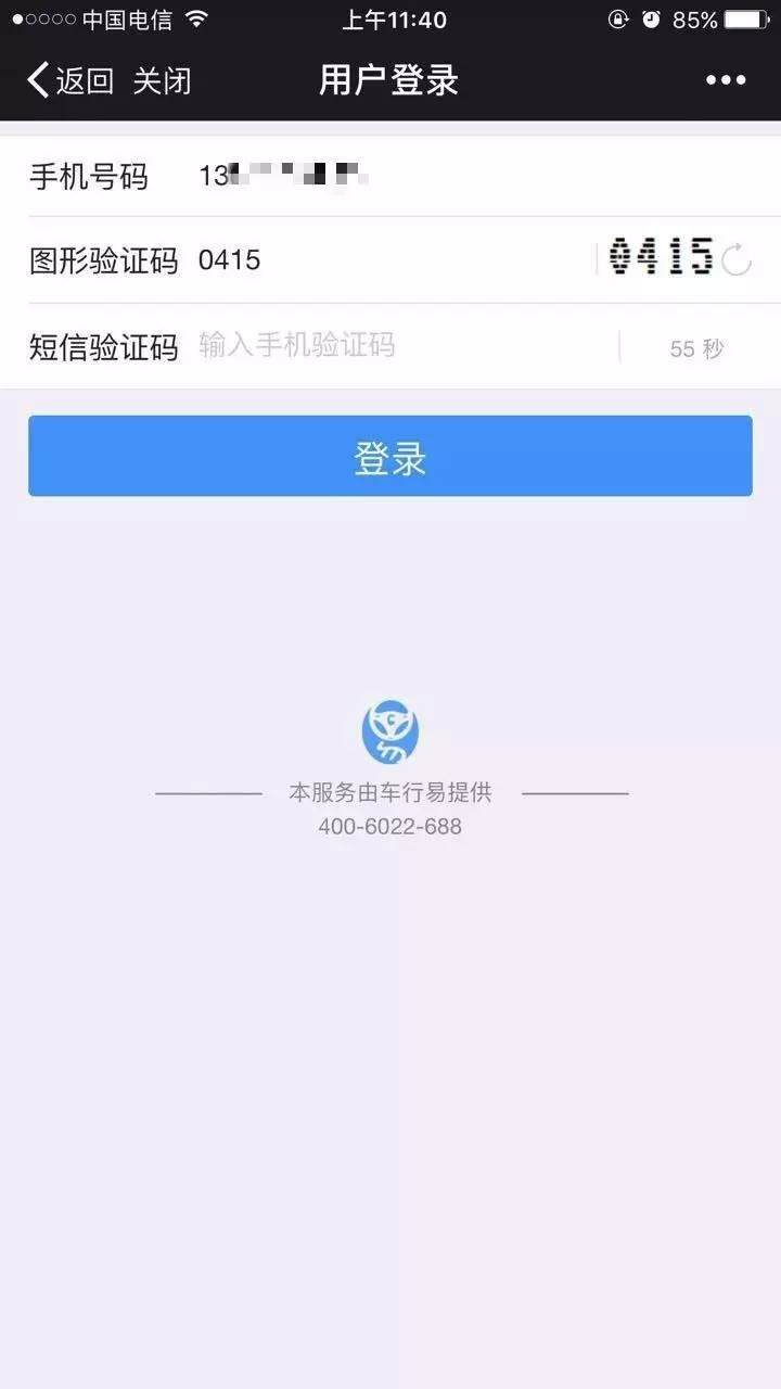 如果您还需要再缴纳违章罚款,那么再次输入手机号、图形验证码还有手机上收到的短信验证码。点击登陆,就能到达付款的界面啦!