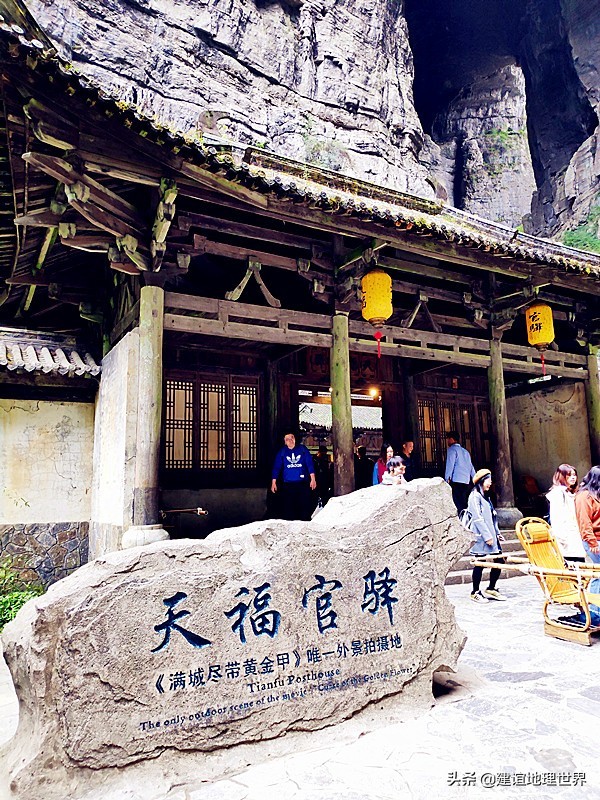 不过虽然是仿建,但是其是严格按照汉唐时期驿站风格来建设的,一切细节都尽量保持历史的本来样子,甚至连一片青砖和灰瓦也是非常考究的,力求保持唐代的风格,比较逼真,所以给人的感觉还是很不错的。当然它的出名还是因为张艺谋的电影《满城尽带黄金甲》,因为这里就是拍摄地。另外如果要下到"坑底",最好还是乘坐那个巨大的电梯,因为走路下去比较费时间,路也不好走。而且这部电梯镶嵌在绝壁山,也是一道景观呢。