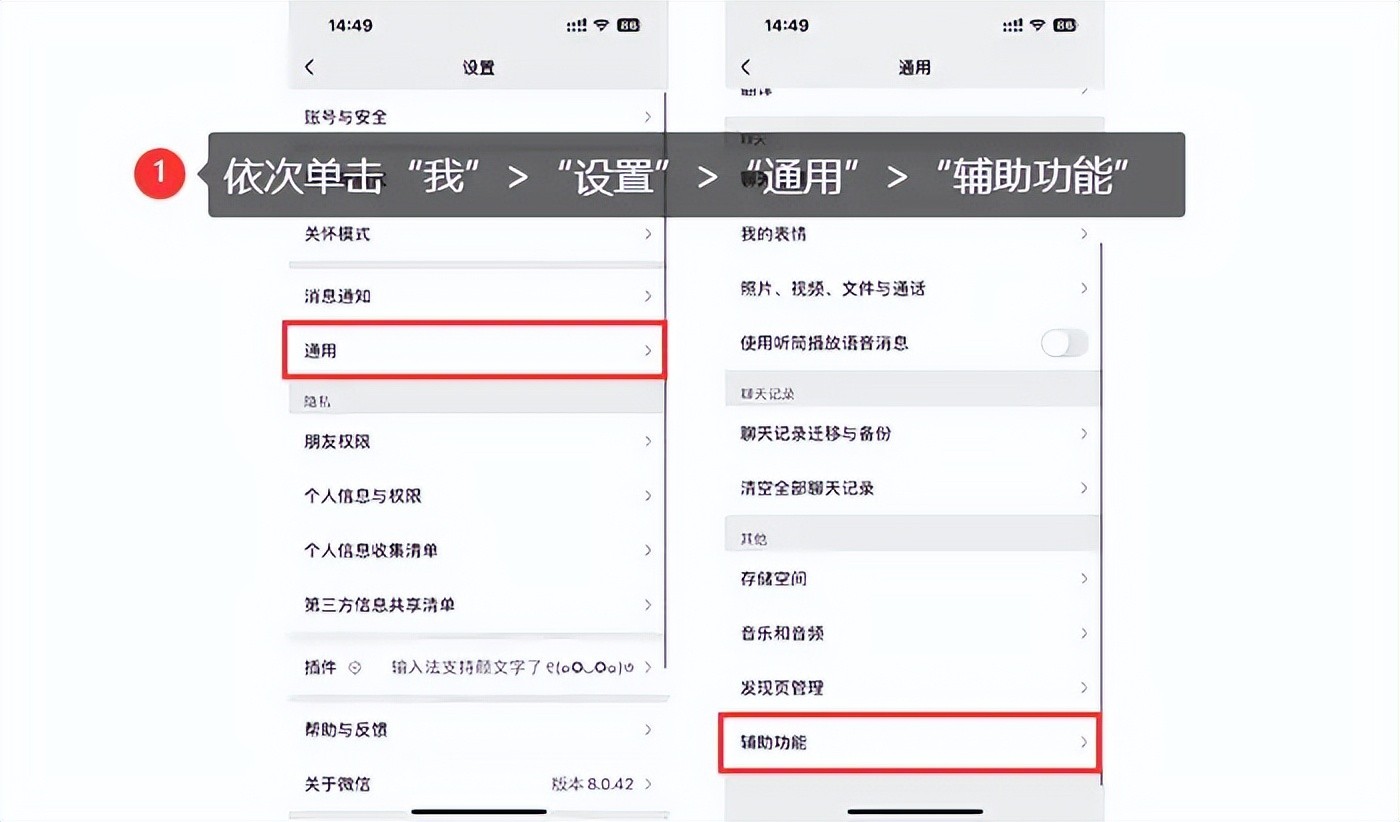 首先,在你的手机上打开微信应用。再依次单击【我】>【设置】>【通用】>【辅助功能】选项。