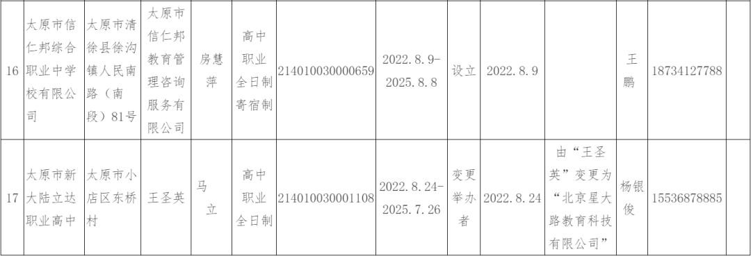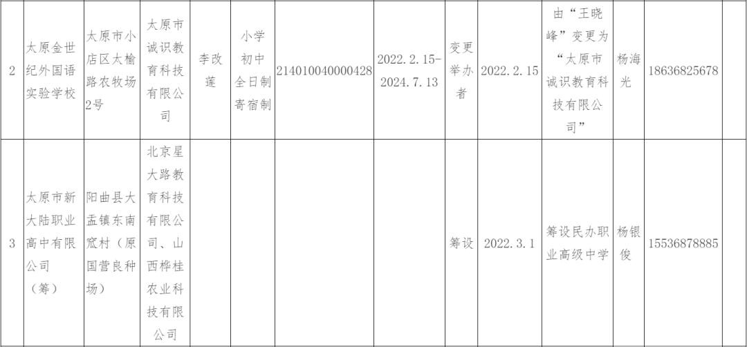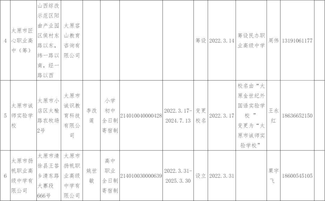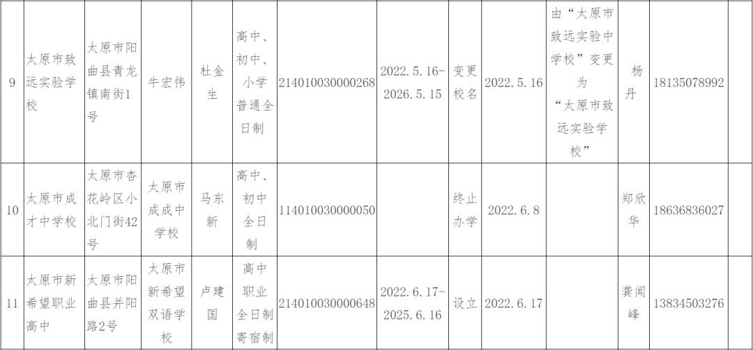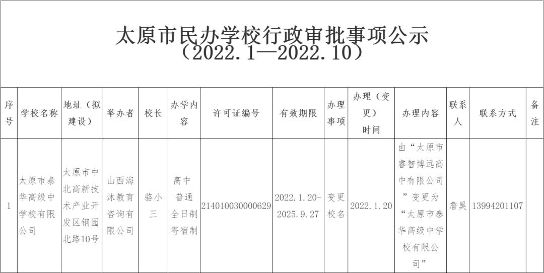 “太原市睿智博远高中有限公司 ”变更为“太原市泰华高级中学校有限公司”