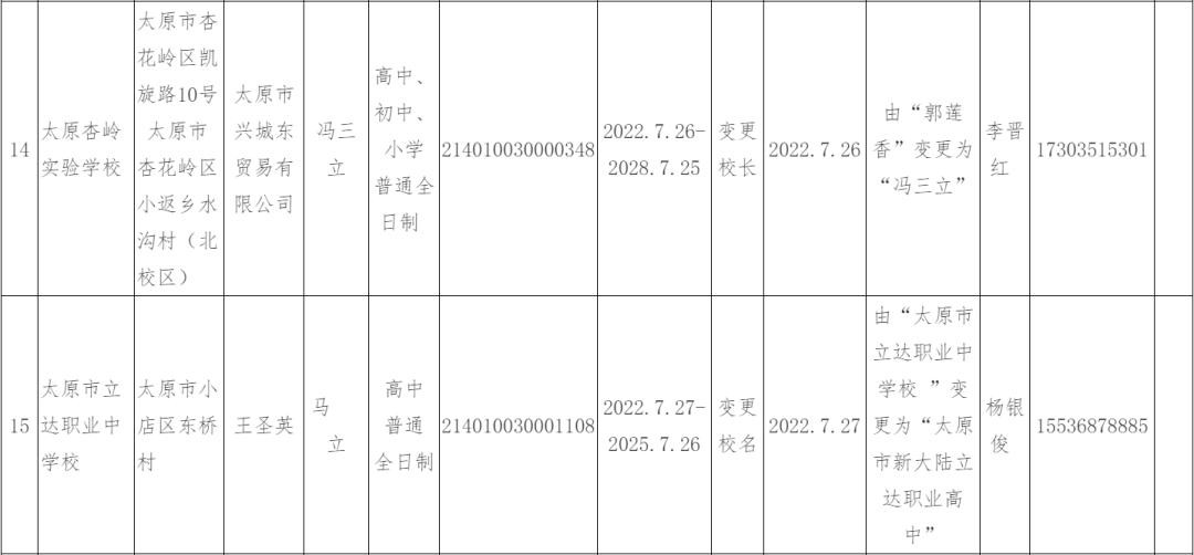 由“太原市立达职业中学校 ”变更为“太原市新大陆立达职业高中”