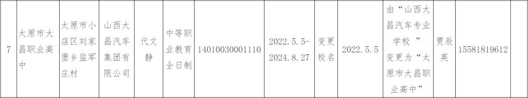 “山西大昌汽车专业学校 ”变更为“太原市大昌职业高中”