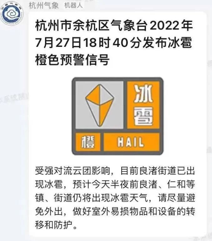 杭州市气象台工作人员表示,杭州可能有分散性小冰雹出现,余杭出现冰雹可能更大一点。