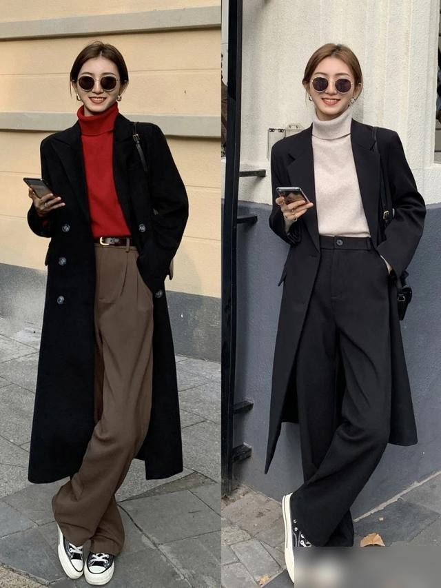在搭配的时候,我们还要注意两点小贴士:首先是合理显现我们的身材优势:既然是显瘦的大衣和裤子,那一定是H型款式啦,避免开叉或者O型款式,这样不仅穿不出风格,还弄巧成拙。