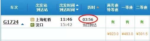 上海至武汉间全程最快运行时间
