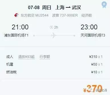 坐飞机从上海→武汉的话