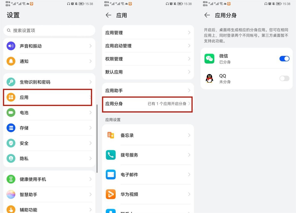 因为工作和生活的关系,很多人的不止有一个微信和QQ。但来回切换账号难免麻烦,安卓在这方面的设计非常人性化,支持微信和QQ的应用分身,一台设备登录多个账号。