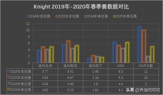 Knight在去年和今年的春季赛数据都可以说是豪华至极,尤其是今年的春季赛更是在获得MVP次数上排名LPL第一。那么今年的Knight在攻防两端的数据上相比去年是否进步了呢?