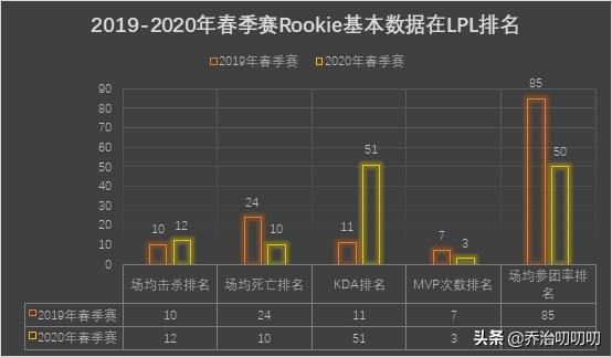 ① 首先,造成常规赛场均死亡增多的原因是因为单核带队,目标太大。在Jackeylove到来之前,因为369的不稳定和Karsa的状态下滑,TES战队唯一的大腿就是Knight。因此,对战的敌方战队只需要把Knight针对好,那么TES战队有很大的概率是要输掉比赛的。因此经常可以看到在比赛里,不管哪个队伍的对战TES战队的策略都是疯狂抓Knight,有的时候甚至野辅双游,配合中路三人一起塔下越塔击杀Knight,而且一次不够再来几次,搞的Knight真的是苦不堪言,所以Knight的场均死亡次数升高也是情理之中的。大家一直把Knight和IG的Rookie相提并论,今年的Rookie也是被各种针对,但是Knight相比Rookie的数据(如下图)来说,场均死亡是真的不算多了。