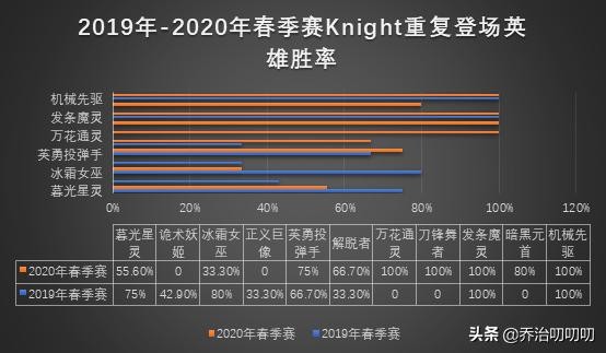 2020年春季赛(常规赛+季后赛)Knight使用英雄及胜率: