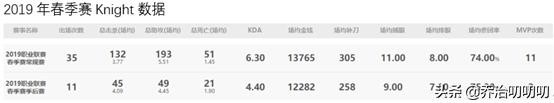 2019年春季赛(常规赛+季后赛)Knight使用英雄及胜率: