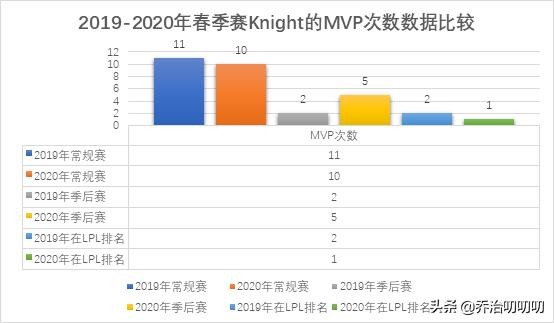 Knight连续两年在春季赛的MVP数据方面位列三甲。详细来看,去年的Knight在常规赛取得11次MVP,季后赛取得2次MVP,排名LPL第5。而今年的Knight更胜一筹,常规赛获得10次MVP,季后赛获得5次MVP,在整个LPL排名第1。