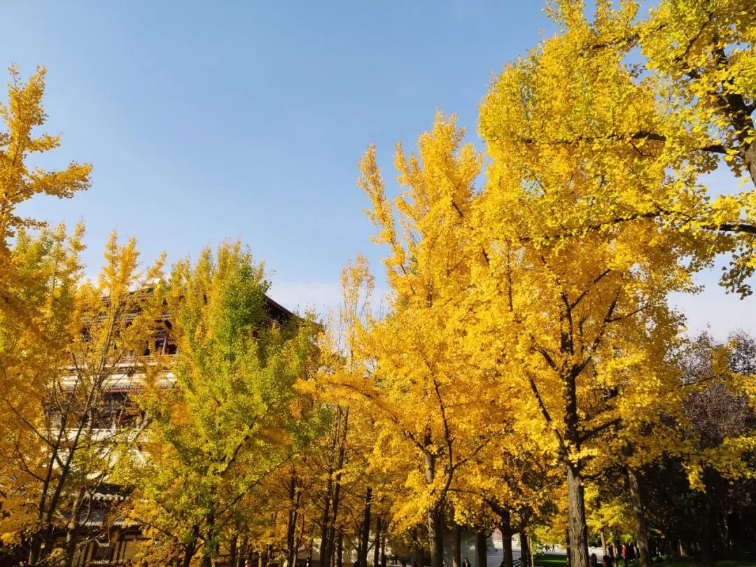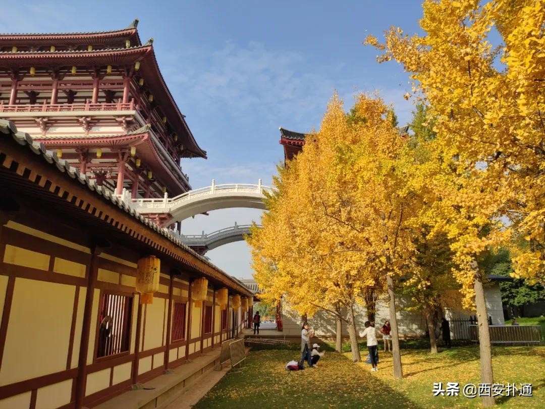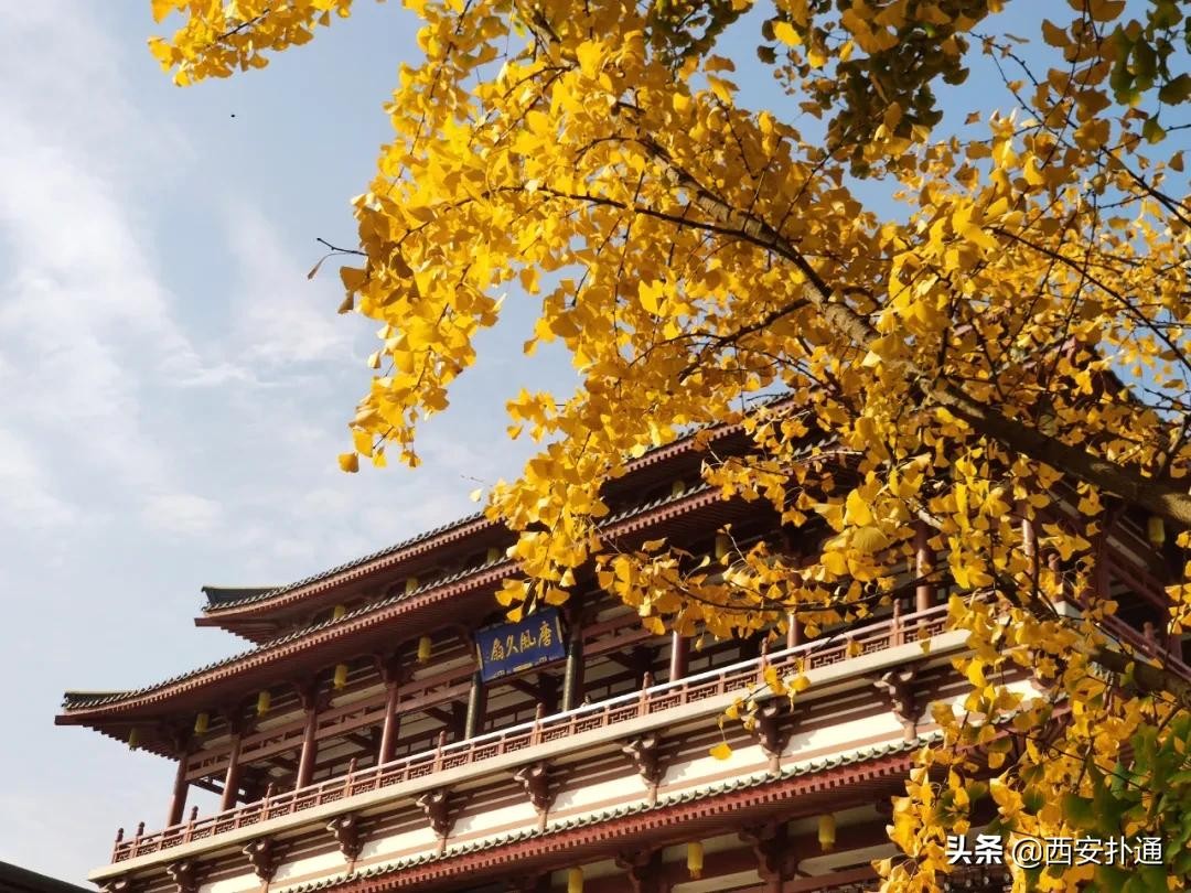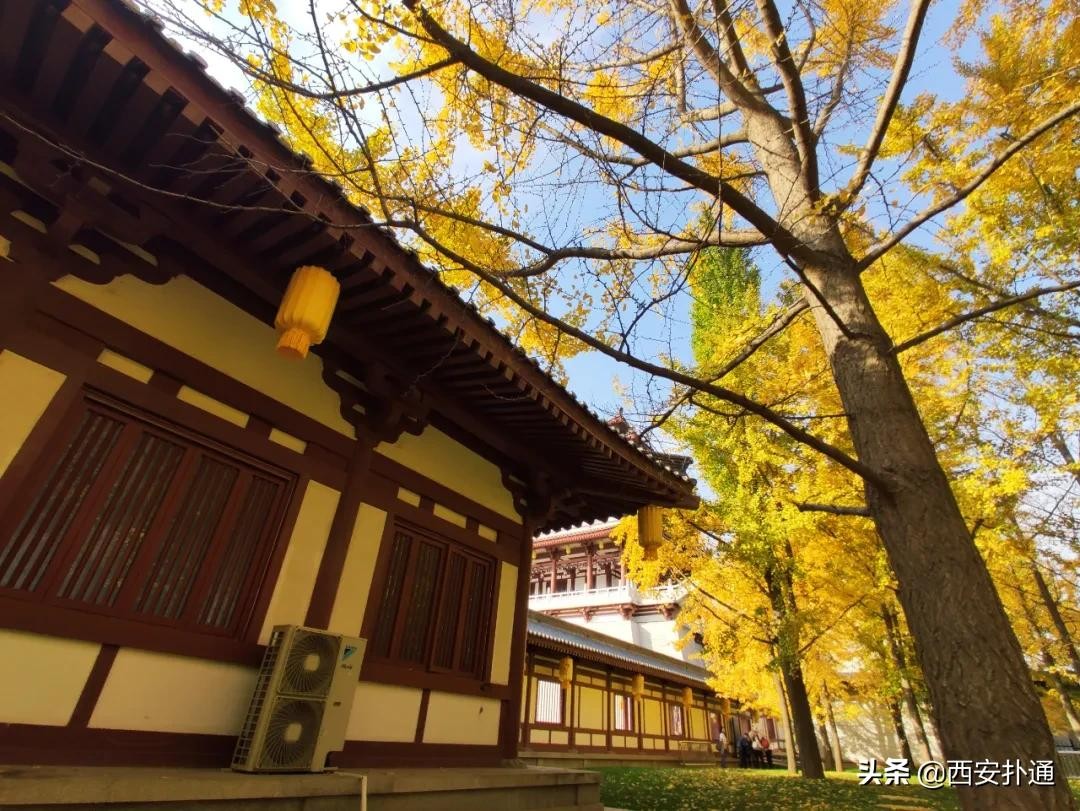 壮观的仿唐建筑群在银杏的点缀中古韵更浓,总会让你恍惚间出现几分穿越的错觉。