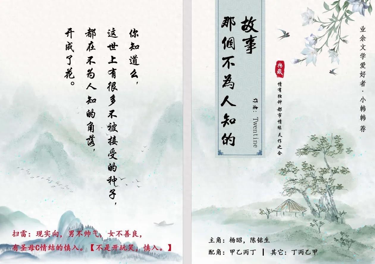 Twentine文里都是小人物,没有离奇强大的背景,没有金手指,人设也不完美,像是你我身边的甲乙丙丁,身处泥泞,匍匐前行,心向阳光。