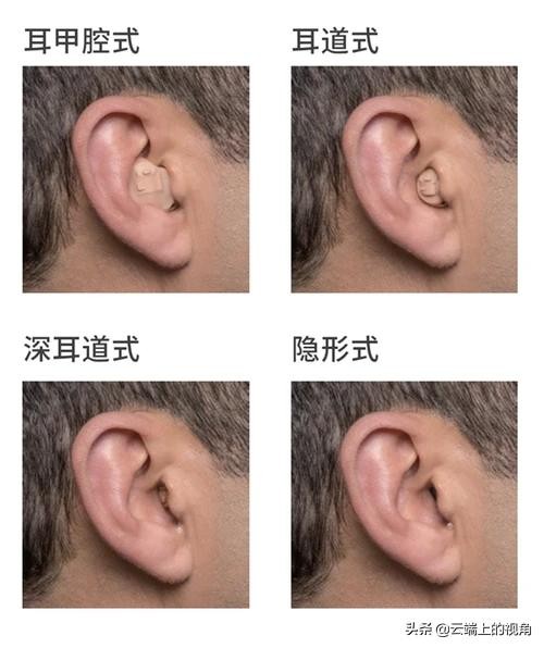 通过查阅资料我们会发现,助听器分为耳甲腔式、耳道式以及隐形式助听器(体积大小从左到右排列)。