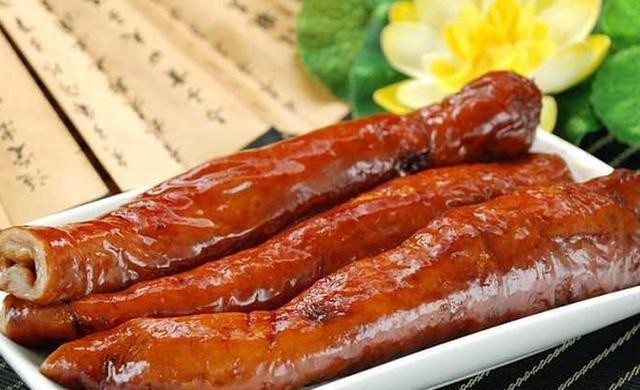 猪大肠洗干净,焯水后卤制25分钟后,浸泡45分钟;