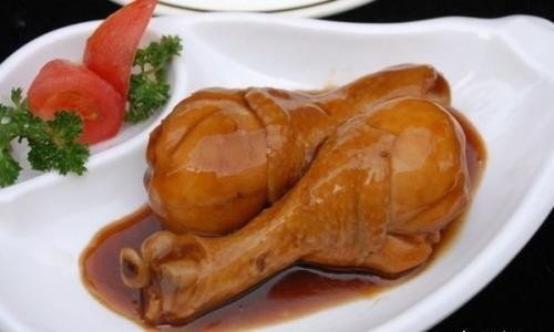 鸡腿洗干净,焯水后卤制20分钟;