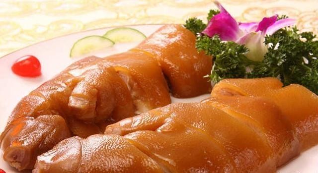 猪脚洗干净,焯水后卤制45分钟;
