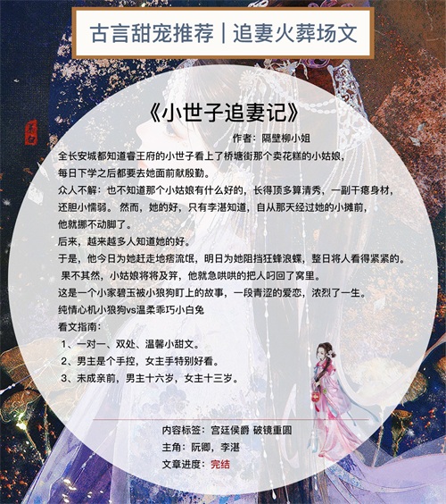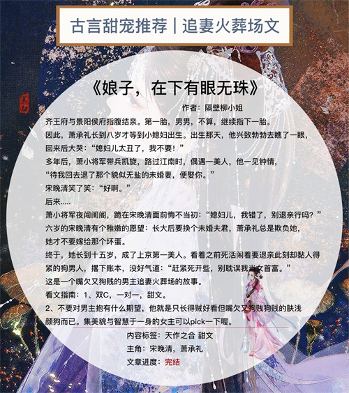大家好,我是小甜甜,每天给大家推荐好文。这次给大家推荐的是古言追妻火葬场系列!