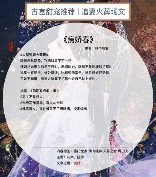 古言追妻火葬场文!偏执狠戾男主追妻火葬场,甜到极致《病娇春》