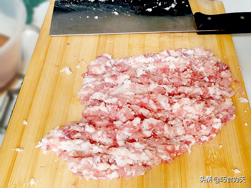 取新鲜的梅花肉,用冷水清洗干净。切成肉糜。