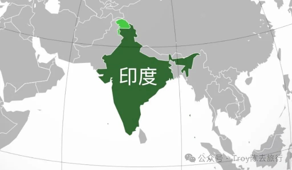 南亚面积最大的国家,全球人口最多的国家。绿色区域为领土争议地区