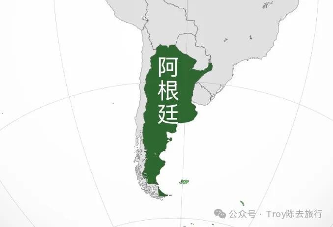 南美洲面积第二大国家,拥有广阔的草原和冰川。绿色岛屿为宣称主权但由英国实际统治的南乔治亚和南桑威奇群岛、福克兰群岛