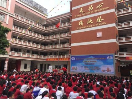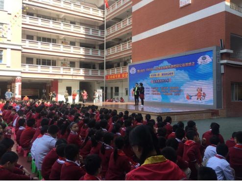在荔湾区詹天佑小学,学校联合广州交通电台、广州应急广播及广州市公安消防局荔湾分局、广东应急救援辅助队,举办了应急安全教育进校园公益活动。上午10时,急促的警报声拉开了本次活动的帷幕,同学们用自带的毛巾捂住口鼻,弓着腰,在班主任老师的指挥下,紧张有序地按照指定的路线迅速撤离教学楼,到达安全地带。由各班学生制作的象征着詹天佑小学“精诚”精神的“天佑号”和“复兴号”列车,缓缓驶向舞台,一步一步指引学生踏上安全的征途。荔湾区消防大队通过视频生动地为师生宣讲了如何预防火灾,遇到火灾如何逃生;广东应急救援队通过现场示范,向师生展示遭遇火灾时逃生技巧。