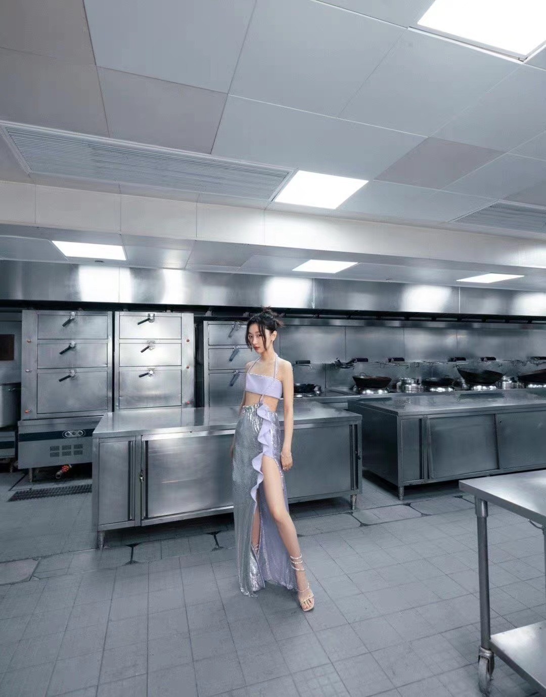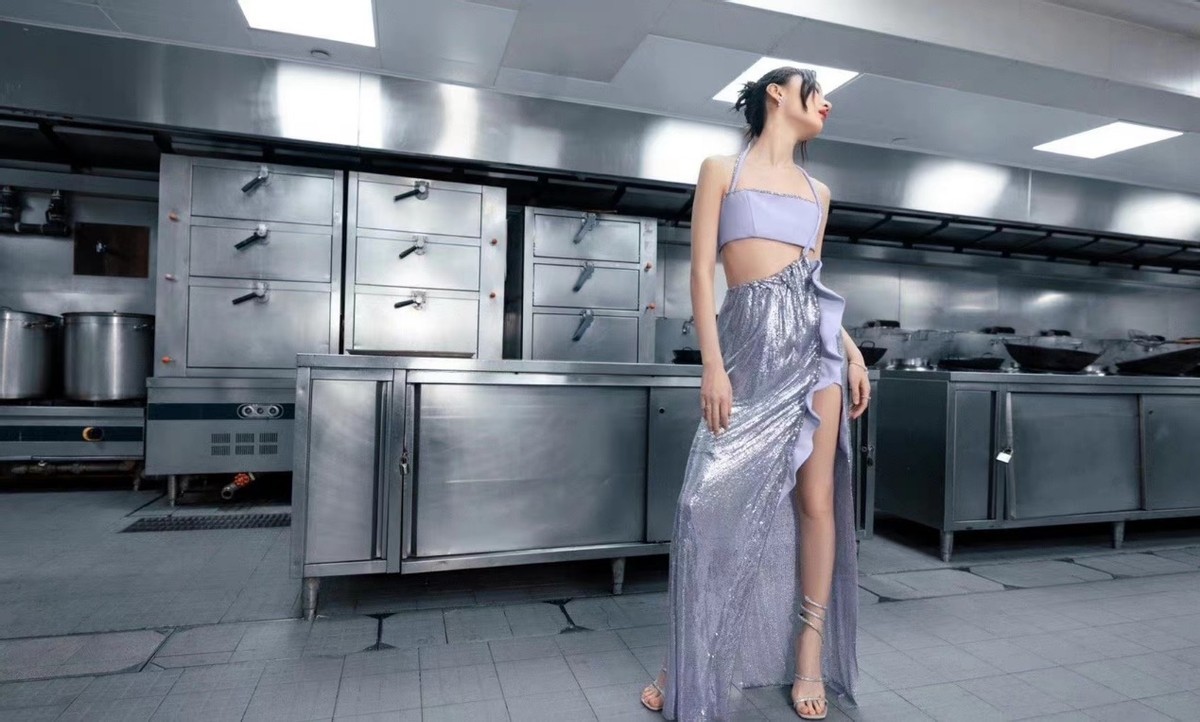 而裙摆高开叉的设计,则是把双腿的线条完美地凸显了出来……
