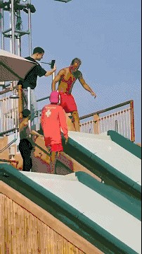 大爷,你还是把棍子收起来吧,不然大家都把你的棍子当成扶杆了。
