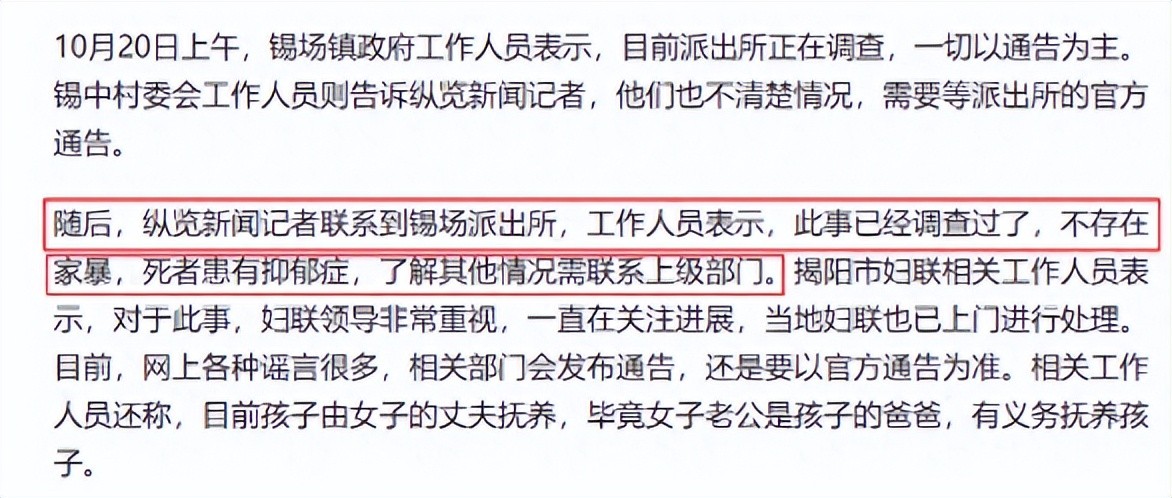 然而,需要指出的是,这些说法尚未被警方证实。警方的工作人员声称不存在家庭暴力,而死者本身患有抑郁症。这使事件更加复杂,因为潮汕地区以其风俗淳朴而著称,而宝妈是本地人,通常不会轻易放弃自己的孩子。