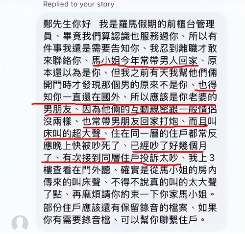 为了证明自己说话的真实性,郑扬融放出了一条据称是前台管理员发给他的短信截图。