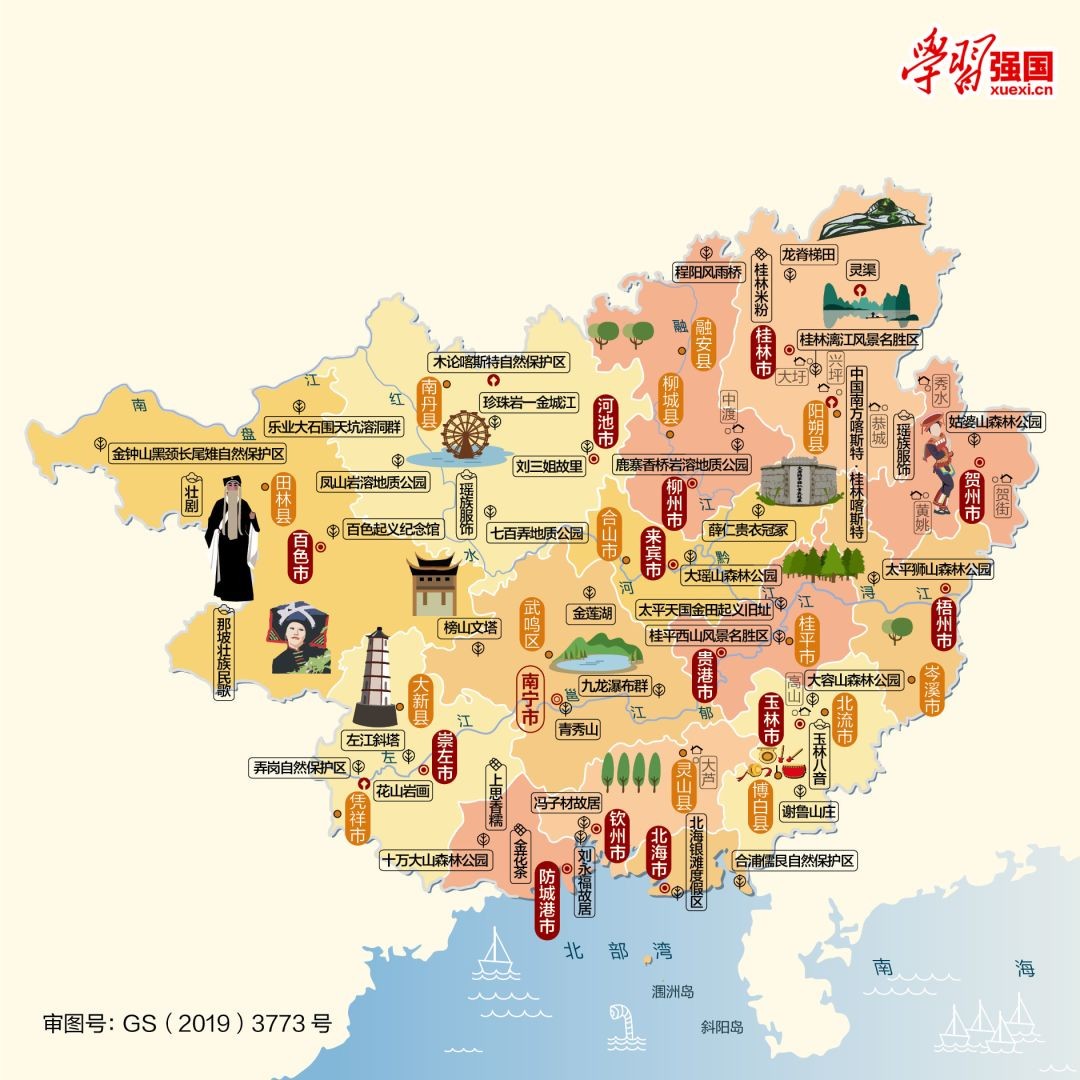 美!广西人文地图来袭,带你看图识广西十四地市