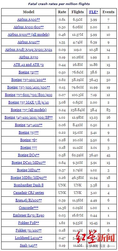 ↑权威航空安全网站airsafe.com做出的各机型安全性统计。