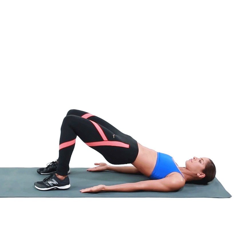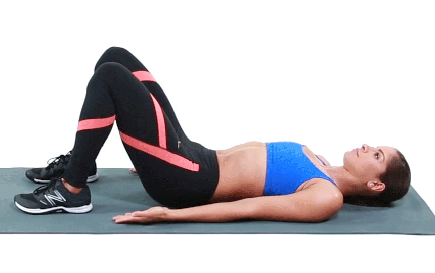 仰躺在地面,膝盖弯曲,双脚应与臀部保持一定的距离。