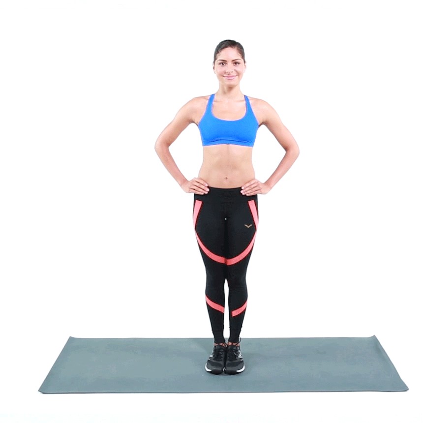 膝盖微微弯曲,臀部下沉,不要像常规下蹲那样向后倾斜。