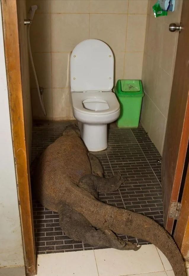 20、看样子这只巨蜥,是迷路了,误打误撞进了这家人的厕所。