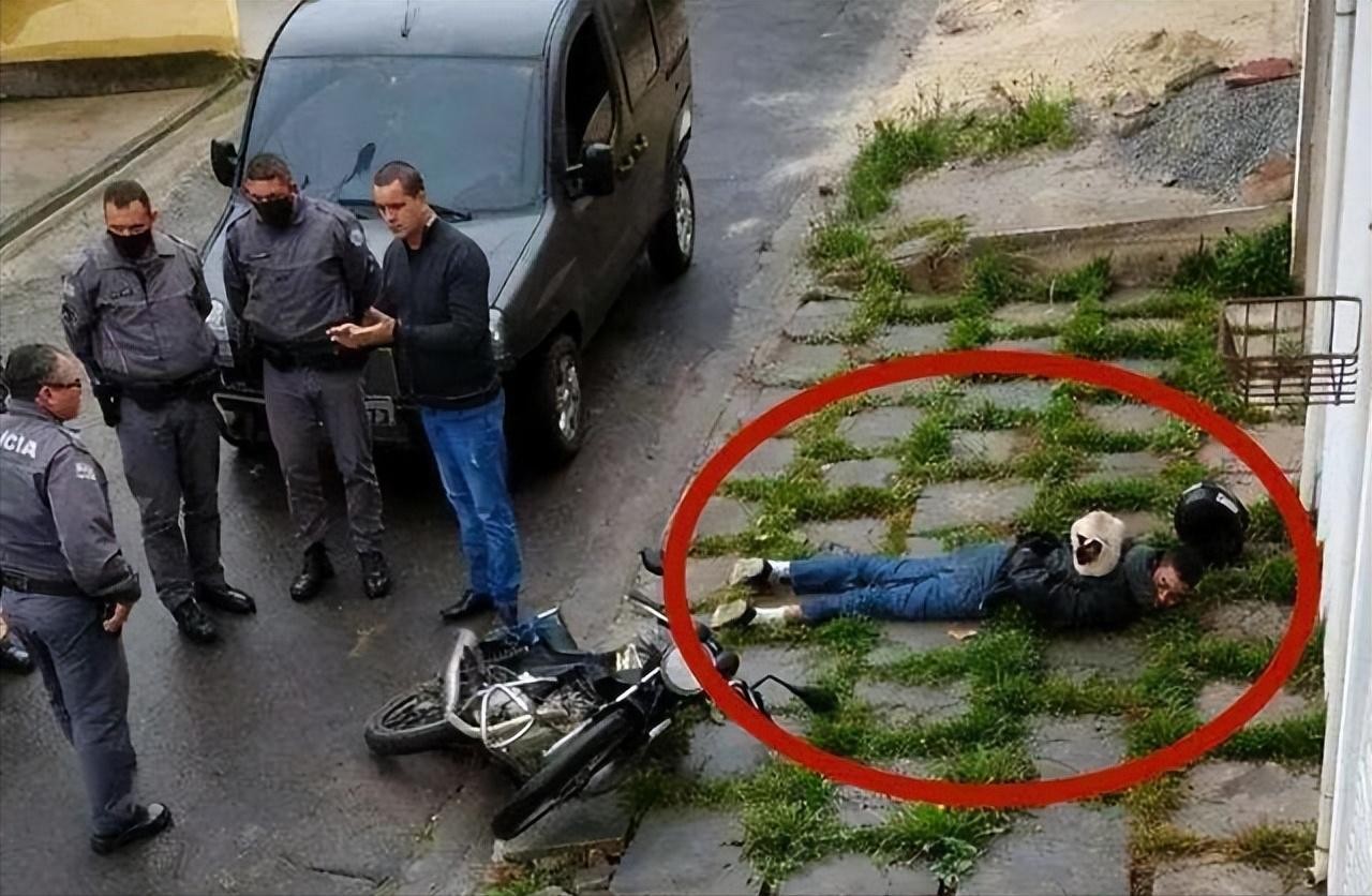 29、飞车抢劫的犯人被抓住之后,躺在地上还成了小猫咪的坐垫。