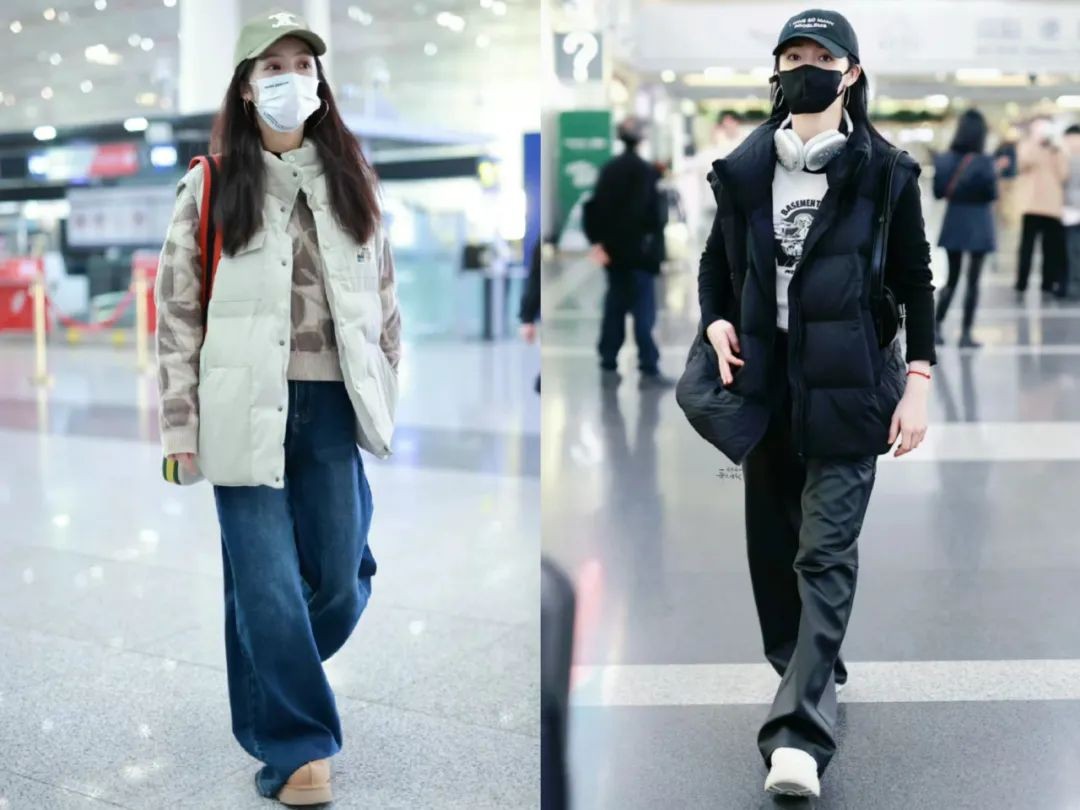 黑白搭配真不愧是经典配色,既显瘦又显高,而白色的羽绒马甲则为整体的穿搭增添了一抹亮色,也突出了女性的柔美和温柔。