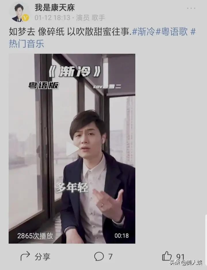 #暑期娱乐指南#近日,康天庥又在网上分享了自己翻唱的粤语歌,这一次他唱的是中国香港女歌手彭羚的《小玩意》。我点了进去,听了两句就吐了,真的不是想打击他,说实话这个水平就想当歌手,除非是家里有矿。