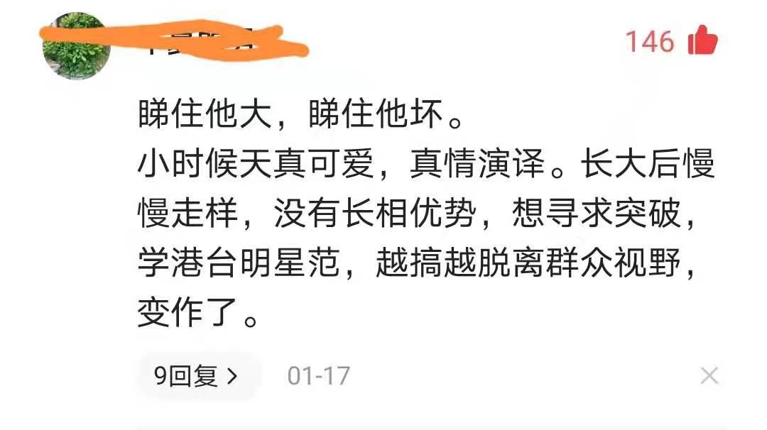 既是一名专业的歌手,建议他真的别再轻易发布一些即兴的,暴露演唱水平的翻唱歌。看得出来,如今他的胃口挺大的,既想当演员又想当歌手还想当网红,而这些翻唱歌恰好就是网红的水平。