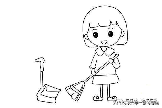 五一劳动节做家务打扫卫生的小女孩简笔画图片