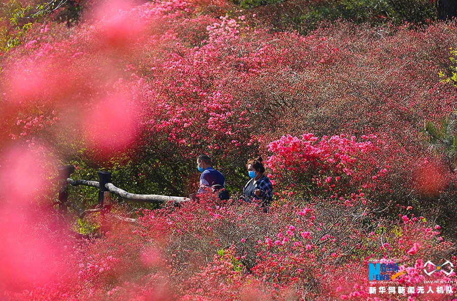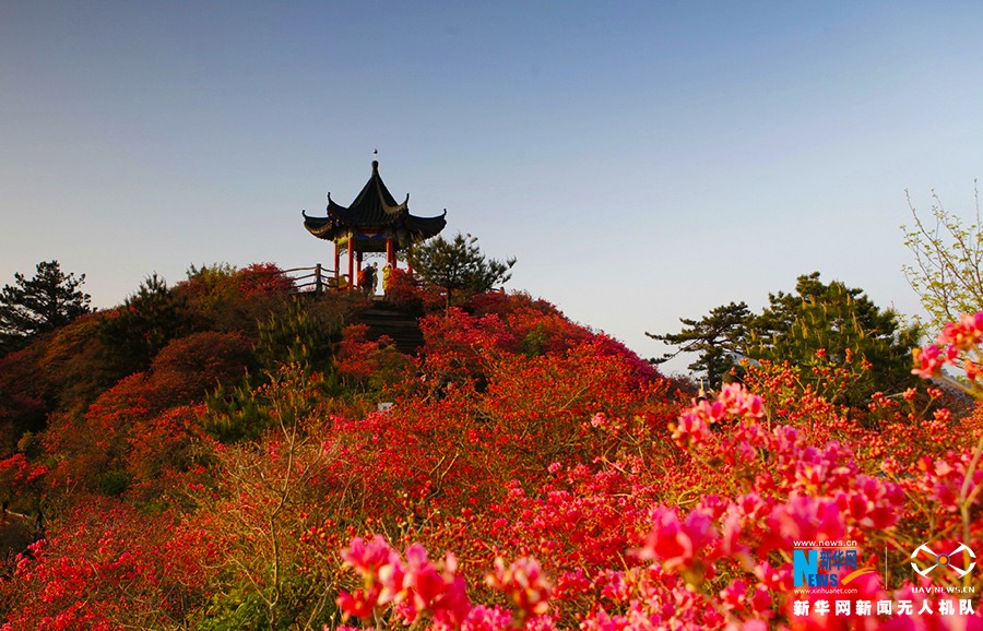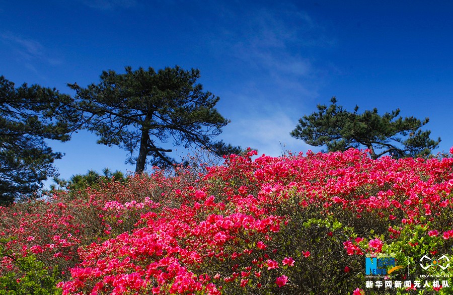 位于大别山区的湖北麻城百万亩野生杜鹃开放,欣赏花海,体验大别山美景。