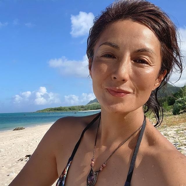 这是因为她住在海边,为了保护海洋环境不抹防晒霜,还喜欢潜水,所以苍老的比较快。这和工藤静香一样,她喜欢冲浪。