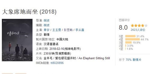 大象席地而坐豆瓣评分多少?大象席地而坐会在国内上映吗