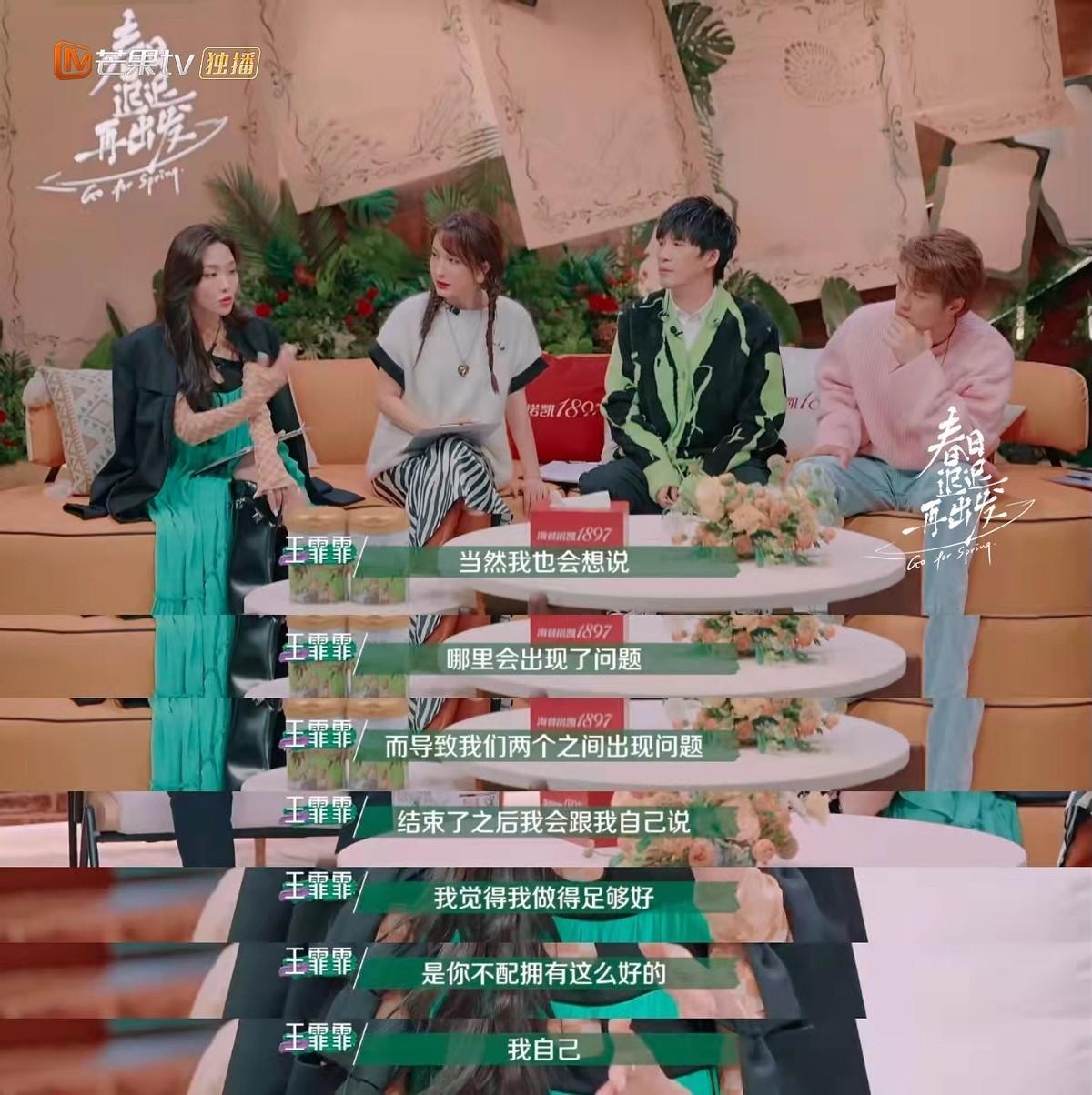 面对被出轨,还是初恋,当时的王霏霏真的是哀痛欲绝。准备出道的王霏霏只能强掩悲伤,在媒体,在人前,都要装作一副高兴的样子,殊不知她背后承受了怎样的伤痛,才能在一转头后眼泪就不受控制地流了下来。一开始,王霏霏也会以为是不是自己哪里有做得不好,才导致两人的关系慢慢变僵。但到了最后,王霏霏一边又一边地和前男友确定到底是不是自己的问题。王霏霏最终还是想明白了,自己已经做得足够好,是前男友不配拥有这么好的自己。王霏霏真的是人间清醒了,有多少人结束了一段恋情,会将在关系里出现的问题全都归罪在自己身上,从此面对新的一段关系后又再怀疑自己是不是做的不够好,然后陷入恶性循环之中。