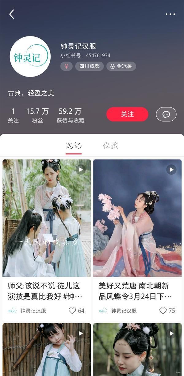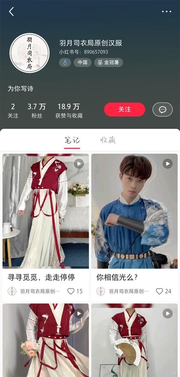 小红书,一个聚集着诸多年轻人的地方,是女孩们心中的“种草”圣地,虽然小红书的商家不及抖音快手等平台,但其浏览量和粉丝量也不容小觑,因此也有不少汉服商家入驻,淘宝是相比较于去年,这一年来,入驻小红书的汉服商家有大幅度的增加,不少商家在此宣传自家汉服,上传相关图片,来吸引更多同袍。因此我们依据各商家粉丝量,列出了小红书汉服商家粉丝前十五强。